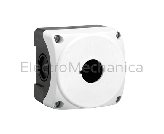 Platinum series pushbutton control stations (empty enclosure) Key features: High protection degree: IP66, IP67, IP69K M16 or M20/25 cable gland knock-outs on all sides and base New styling with incorporated anti rotation facility for actuators Empty plastic enclosures (without actuators and contact blocks) Easy wiring with internal contact identification on cover and base Contact blocks and LED lamp holders base mounted with screw terminals facing forward SERIES Platinum series pushbutton stations COVER Grey HOLES 1 hole DESCRIPTION Empty pushbutton station DIMENSIONS (MM) (H) 72 x (W) 72 x (D) 56 mm