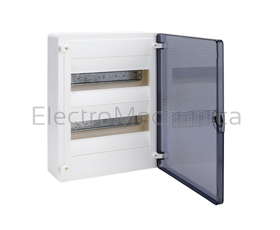 Golf series distribution boards VS surface mounting enclosures Earth/neutral terminals supplied with enclosure Pre-cut profiles for cable/conduit/ trunking entry Transparent door 180° opening (hinged left or right) Enclosures can be joined together (horizontally or vertically) Internal cable tie fixing points / cable can be run behind breakers SERIES GOLF series NUMBER OF WAYS 24 (2 x 12) DESCRIPTION Surface mounting distribution board INDEX PROTECTION IP IP40 (with door) COLOUR Light grey (RAL9010 ) DIMENSIONS (MM) (H) 377 x (W) 282 x (D) 99